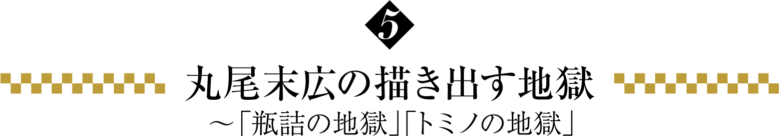 于2014年2月在《月刊コミックビーム》上开始连载的《トミノの地獄》,是丸尾以西條八十的诗歌为灵感构思出的最大规模的长篇作品。这部作品连载了约5年,不仅如计划那样成为他本人职业生涯中最长的一部作品,而且还是一部集结了许多丸尾末広精华的作品,比如双胞胎、畸形儿、昭和初期的浅草、怪奇秀、视幻觉等。