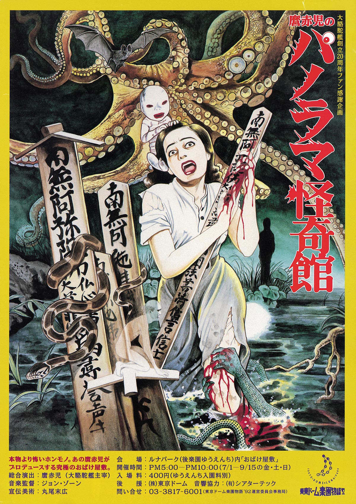 这幅画是给後楽園游乐园的”鬼屋”项目画的,总导演是大駱駝艦的麿赤児先生,音乐由John Zorn负责,也不知道这样的项目是怎么达成的。