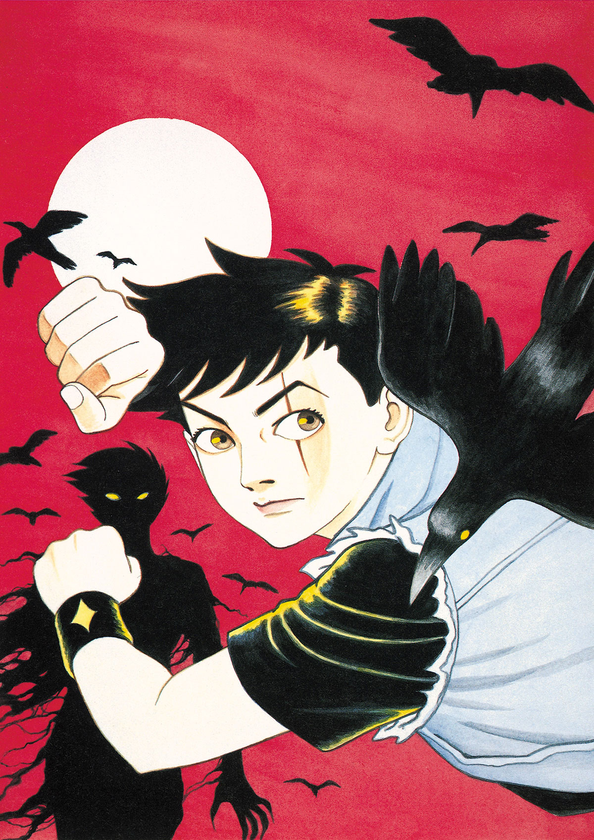 在积极发表漫画的同时,丸尾也画了很多小说插画和封面。他为荒俣宏的畅销小说《帝都物語》系列所做的封面设计,一个头戴学生帽身穿学生制服的少年形象,大概是他80年代最著名的作品。而丸尾作为一位拼贴艺术家,他结合照片和插画的创作经验也在其漫画的画面表现上得到充分展现。