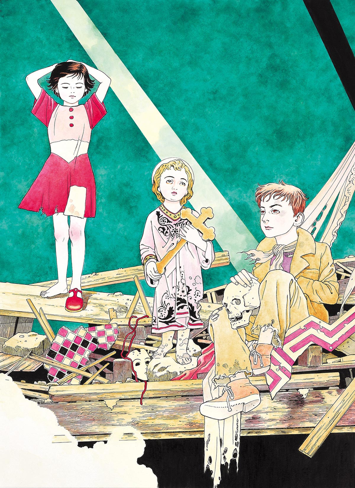 迎来绘画生涯40周年的丸尾末広,近期出版了最新作《天國 パライゾ》。这部作品里的五个短篇,描写了二战期间长崎、奥斯维辛集中营,以及战后日本社会中儿童的生存故事,可以说是丸尾全新的创作领域。作为日本漫画界”魔神”般的人物,丸尾无疑是个独特的存在。而在新的表现方式上,他也从未停止探索。