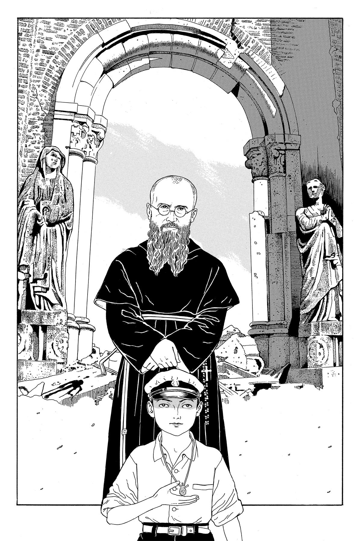 长崎有一位年过九旬的小崎登明先生,他是名天主教修道士。据说有人拿了本刊登了《オランダさん》的《モーニング》给他看,他会怎样想呢?我在画的时候,很想去这位小崎先生担任馆长的聖コルベ記念館看看,但因为有COVID-19的缘故,无法前往长崎。