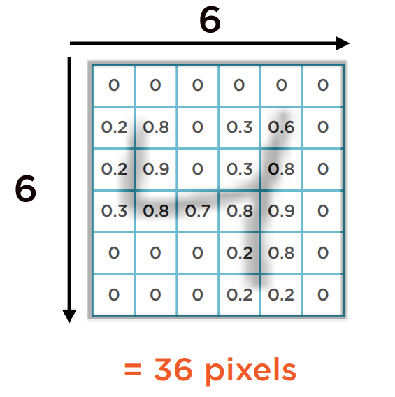 下图是一张灰度图,图上显示的是一个手写数字4。它的像素表示如下: