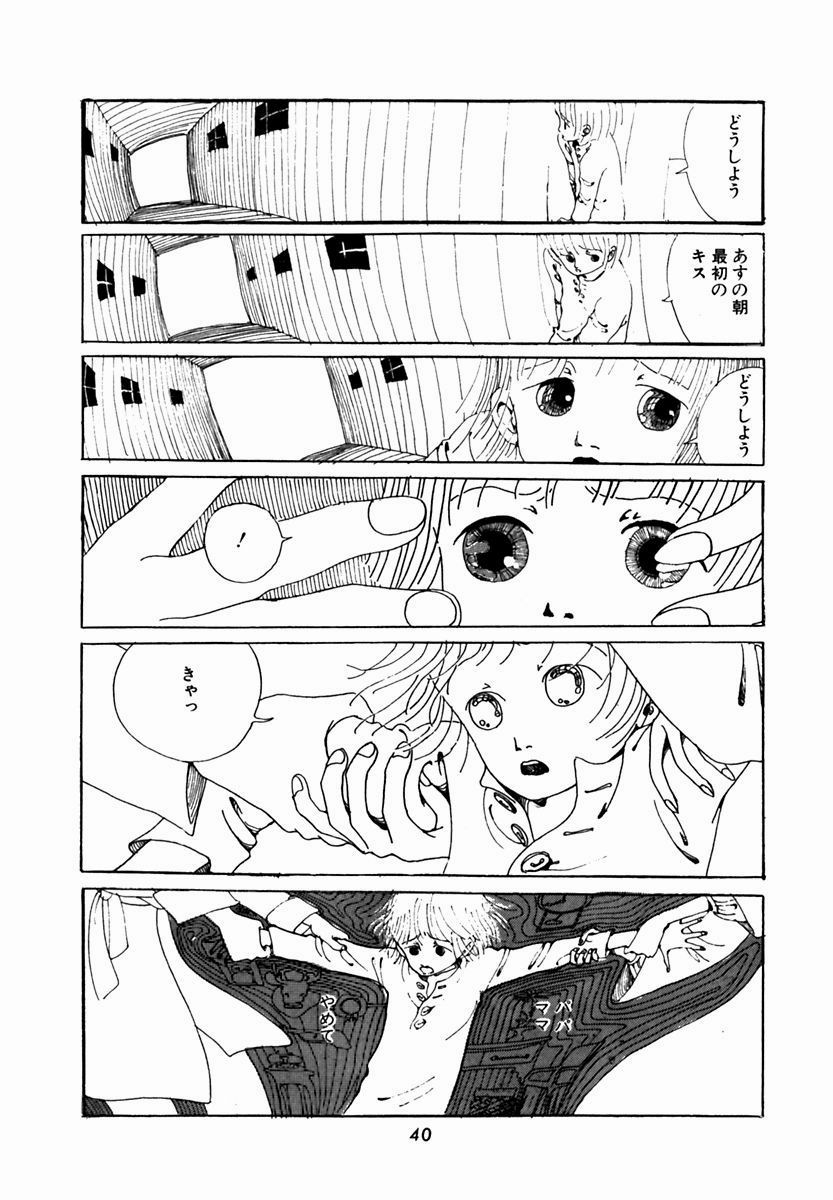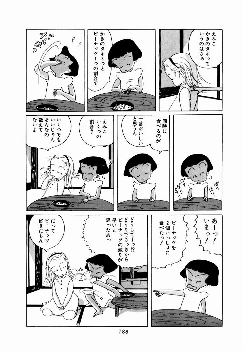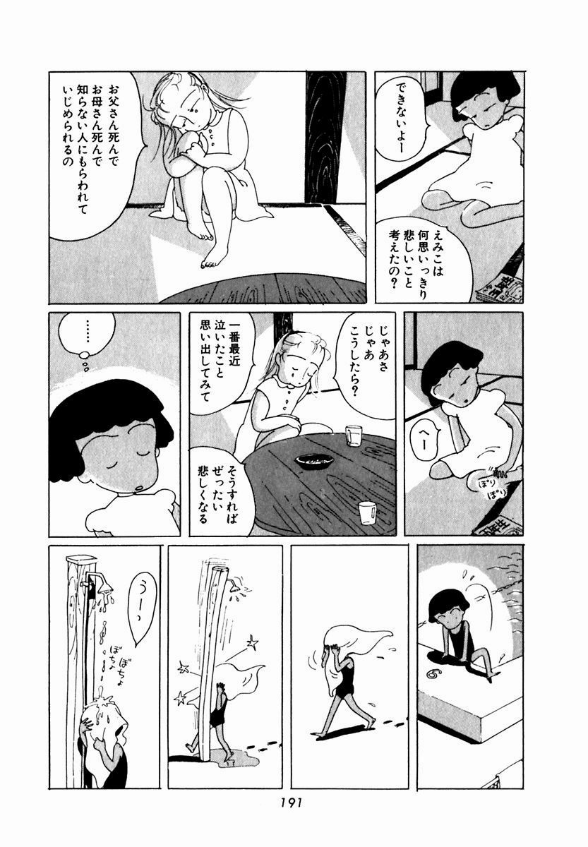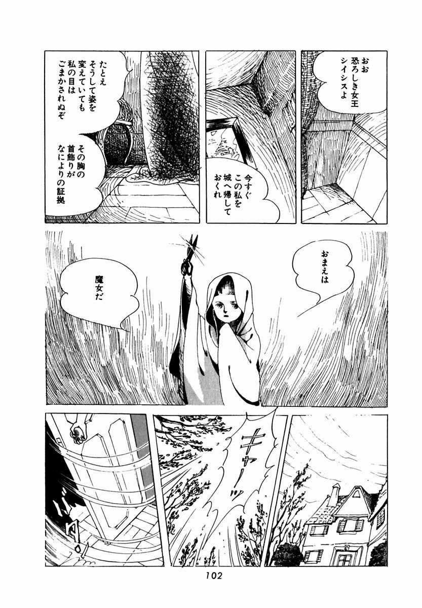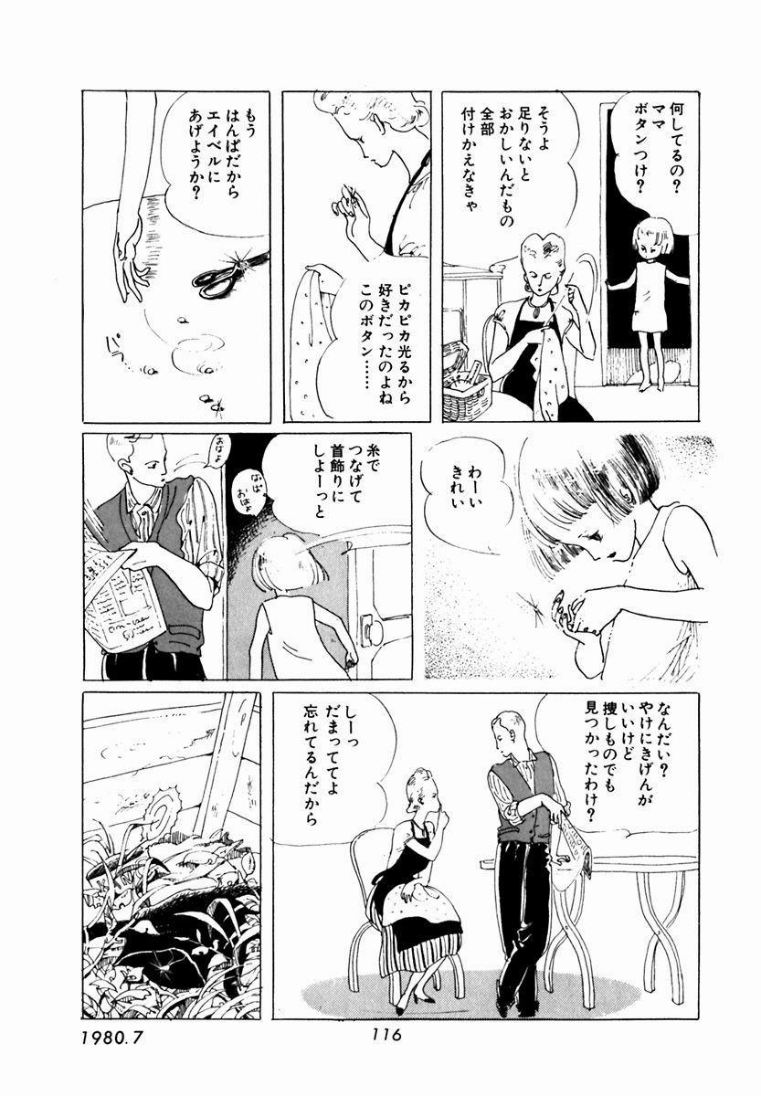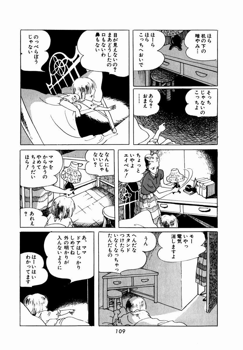 主人公是一个戴眼镜穿着牛仔裤的少女,似乎还患有严重的厌女症。公共浴室里,她意外邂逅了一位老妇,后者让她产生了母亲的错觉,佝偻的背、剖腹产的痕迹…正当少女内心逐步陷入与“母亲”对话时,却被另一个陌生女孩误称为妈妈而打断思绪。作品最后以远去的老妇背影和一句「ツギハ アナタノバンデスヨ」(轮到你了)收尾,成功的制造出了某种“违和感”。本作构图大胆,沿着身体的文字也非常有创意。