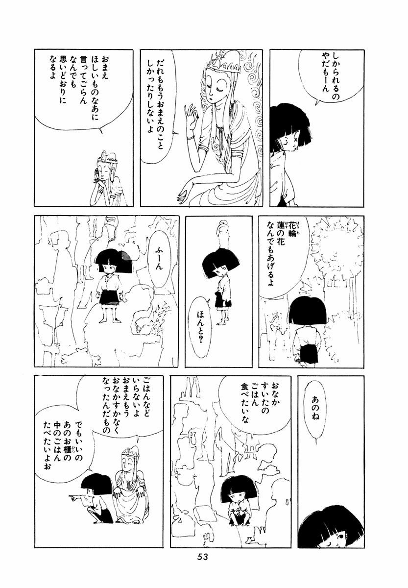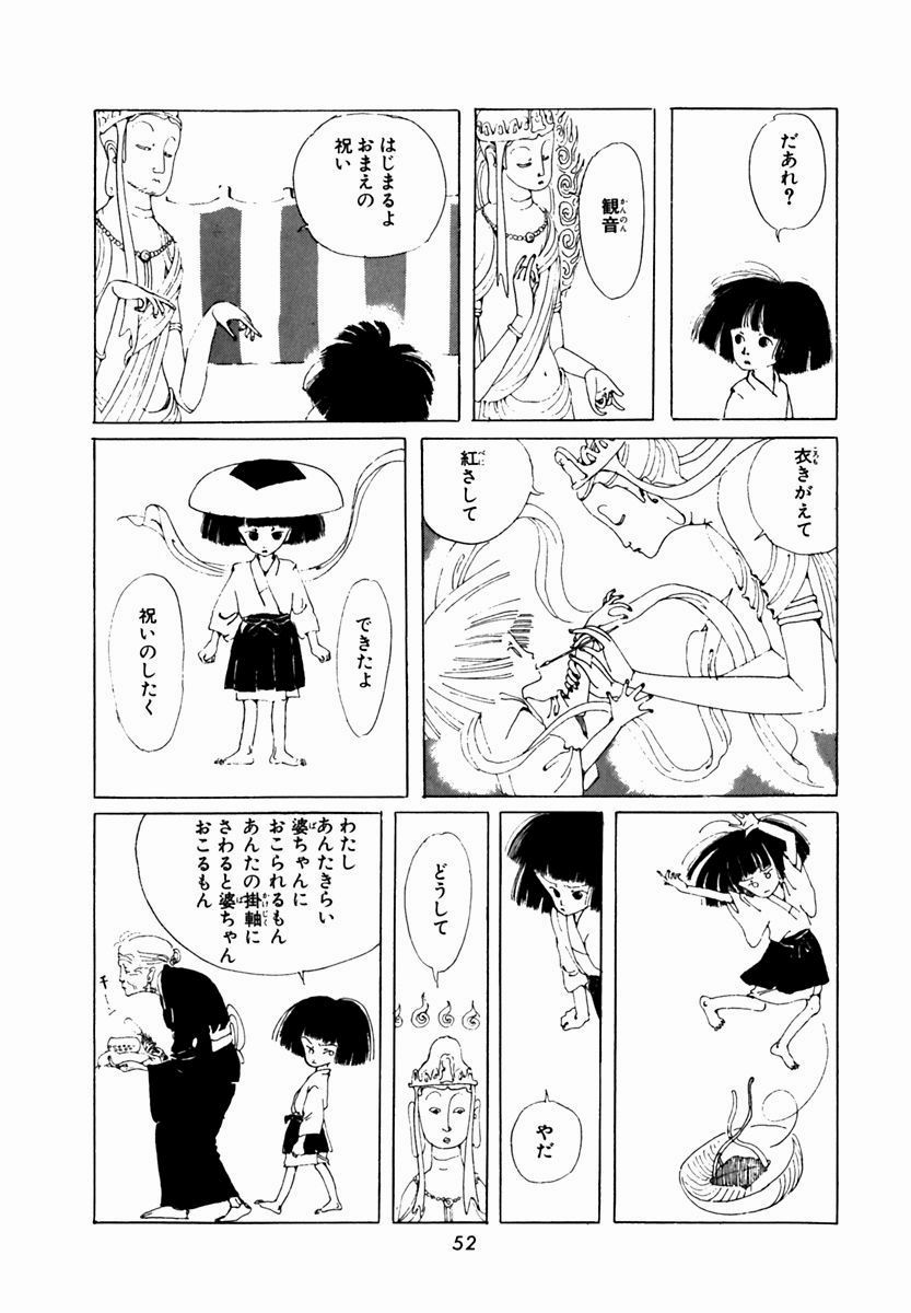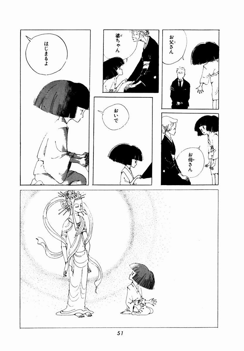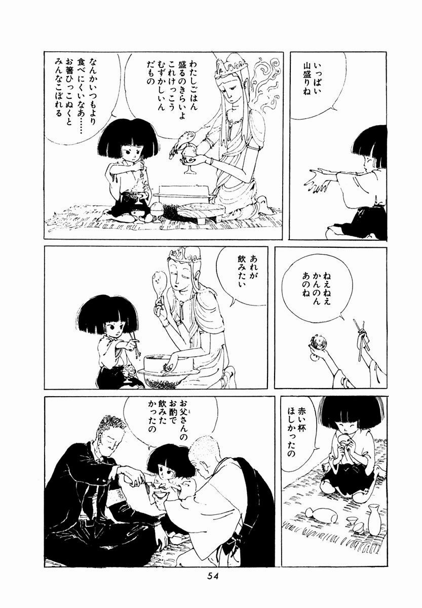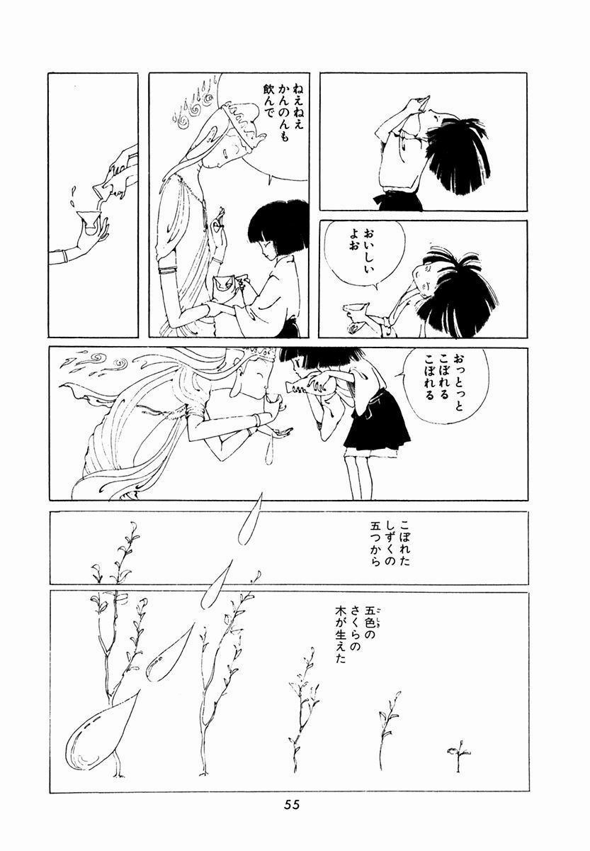 讲述的是一个死去少女的灵魂在她的葬礼上与观音交流的奇妙故事。这部作品甫一问世便以其奇幻的描写手法引起了人们的关注,从此,高野也被视为“新浪潮”艺术家。作品中出现的甜酒和五色花,取材于高野文子儿时读过的童话《花まつり》里的形象;而作品前几页与最末一页采用了一连串形状角度固定的画面,据说是受到了高野喜爱的鈴木忠志早稲田小劇場的影响。