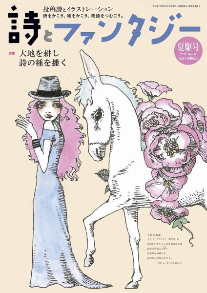 《詩とファンタジー》创刊于2007年10月,最初是以每季度一期的节奏出版发行,每期都有一个中二别致的名称。自2014年1月起由宇野亞喜良担任封面绘制的工作。2016年开始,杂志改为每年出版两次的节奏(分别是4月1日和10月1日),然后在2018年发行的第37期中,又宣称今后将停止定期出版的模式(你们开心就好)。不过宇野的封面倒是一直坚持到了最近,并没有更换插画师的迹象。