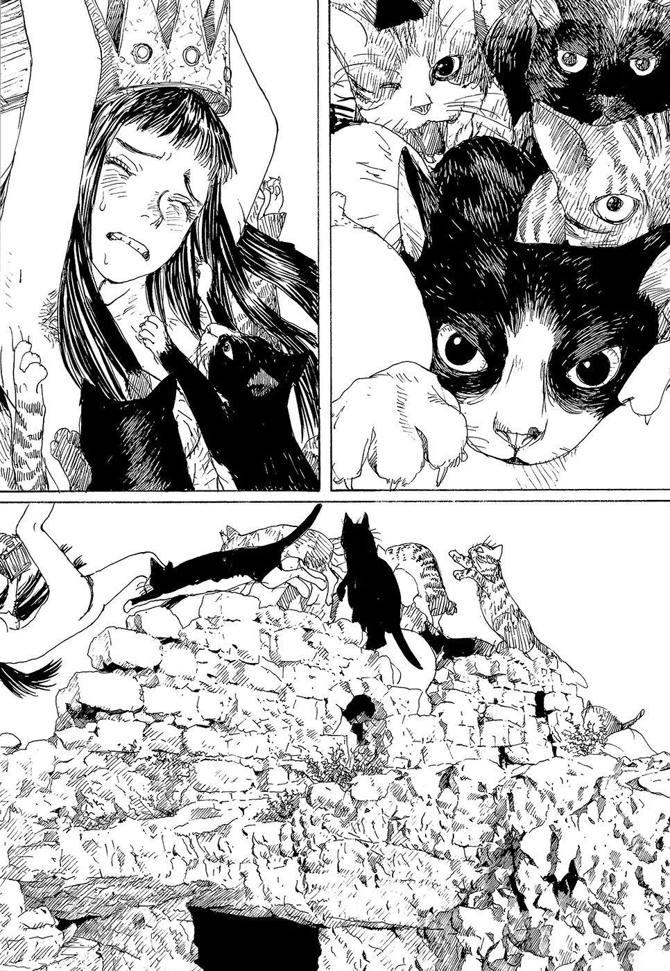 《ポム・プリゾニエール》收录的是鶴田謙二在杂志《楽園》连载的短漫。设定上沿用了2003年发行的《Forget-me-not》。可认为是借此设定画的外传短篇集。那是一个发生在威尼斯的少女侦探与怪盗之间的故事。在《ポム・プリゾニエール》中,鶴田謙二着重描绘了裸体少女与猫在废土(威尼斯)调情的元素,将情节弱化。其中猫的原型是鹤田的爱猫オニ。